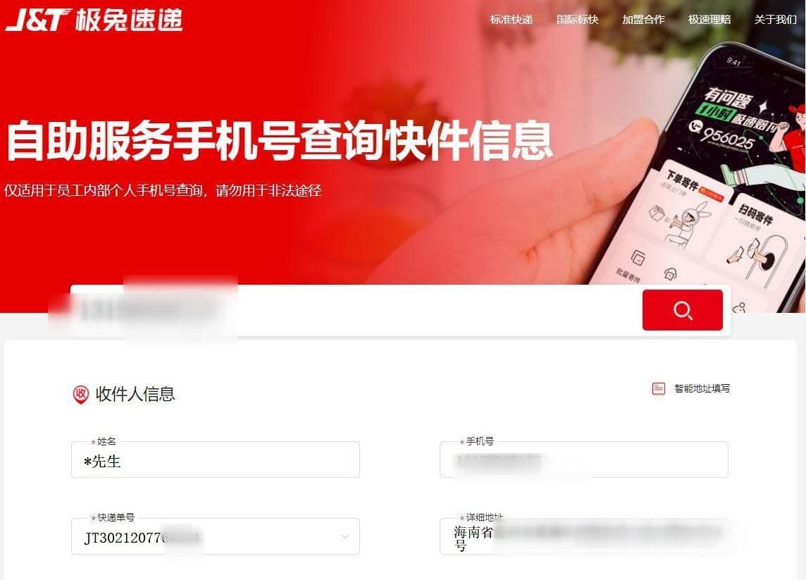 快递收货地址等信息查询